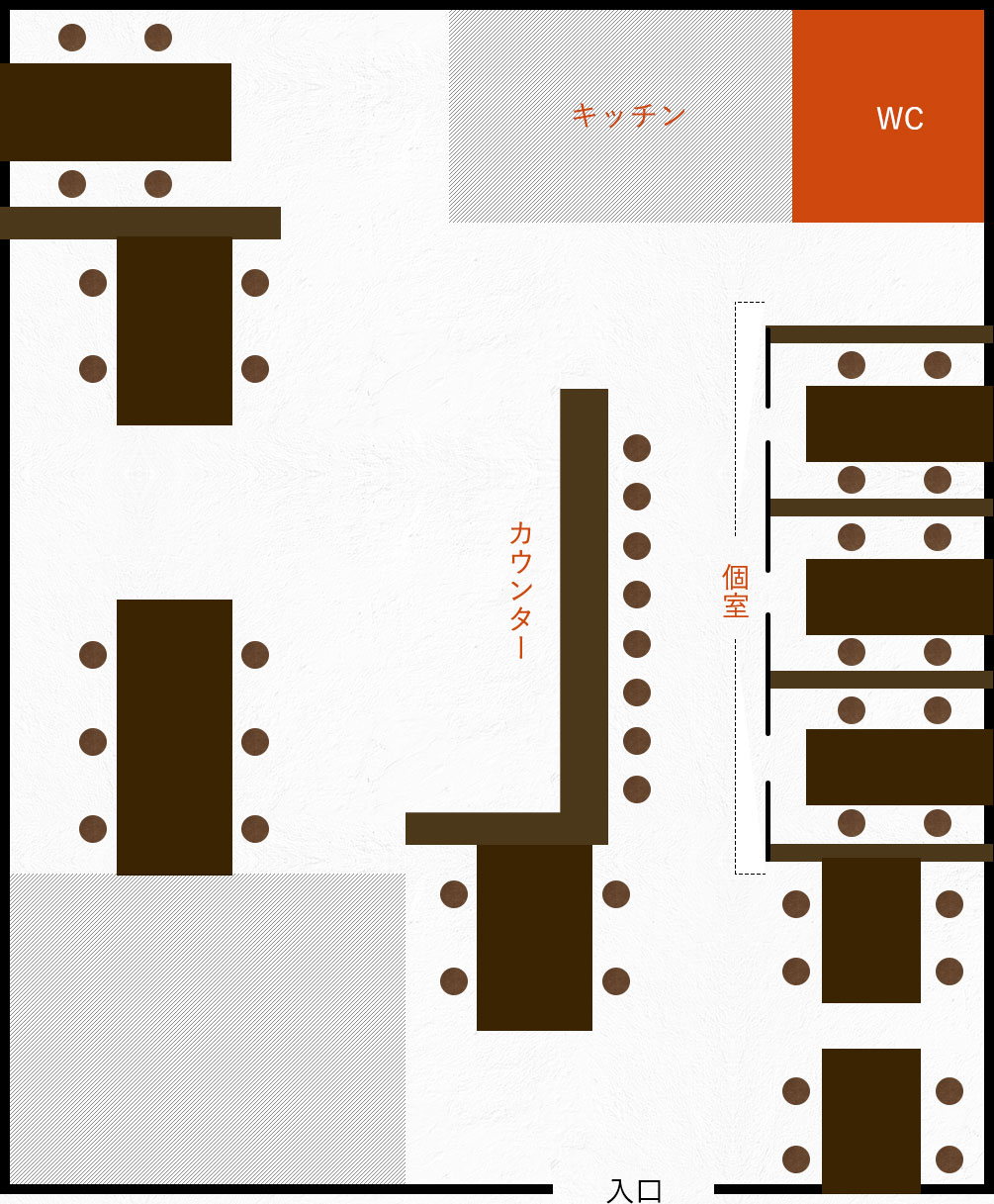 入り口をカーテンで仕切ったお席で、周りを気にせずお食事をお楽しみいただけます。