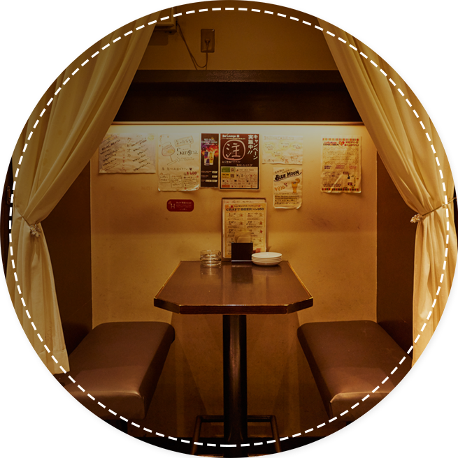 カウンター席やテーブル席、カーテンで入り口を仕切った個室など、利用用途や人数に合わせて